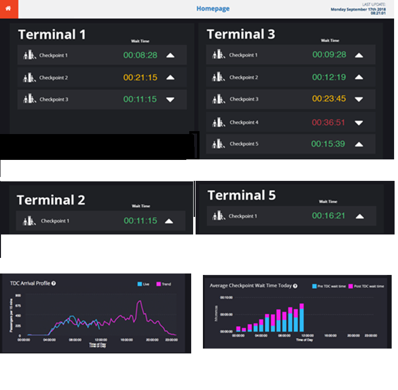Passenger tracking is also useful to measure amount of passengers in checkpoint lanes to notify pasengers of wait times and manage the number of people working at the checkpoints.